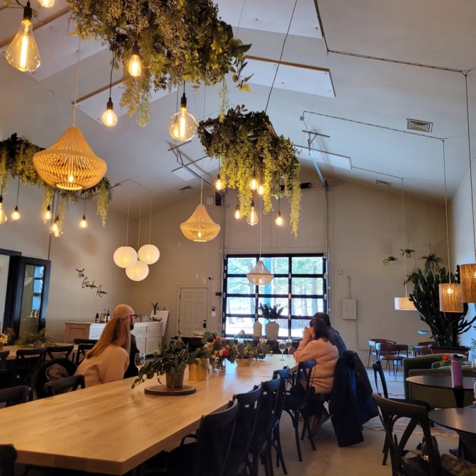 On arrival, we were offered a splash of something at the bar and told to wait in the Garden Room. I must have missed the memo – it didn’t register on me that the barrels and production were moving. This space is gorgeous – it has a farmhouse style that is at once sophisticated and comfortable. Clearly the long tables are for dinners and educational sessions, while the small seating is for tasting room overflow. Fantastic vibe.