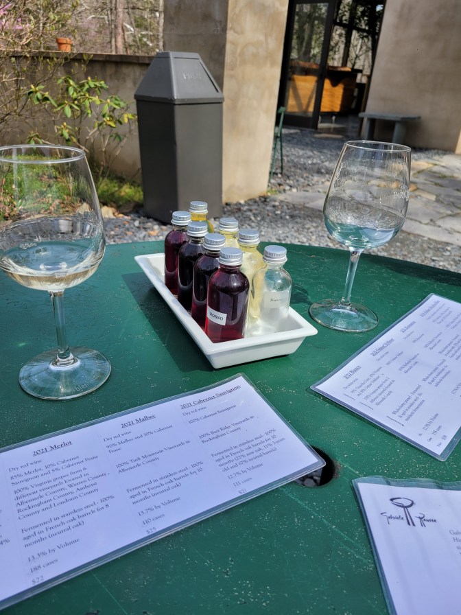 On to the 2021 Merlot. I didn’t get to ask, but I was shocked to see so many 2021s and 2022s on their menu – I assume they got hit hard by the 2020 mother’s day frost that caused so much turmoil for so many in Virginia. While this is a very young merlot, it’s was drinkable. I think with another six months it will be drinking absolutely lovely. It had the sharpness in it that sort of felt tannic and sort of felt like it just wasn’t fully ready for me to drink it.