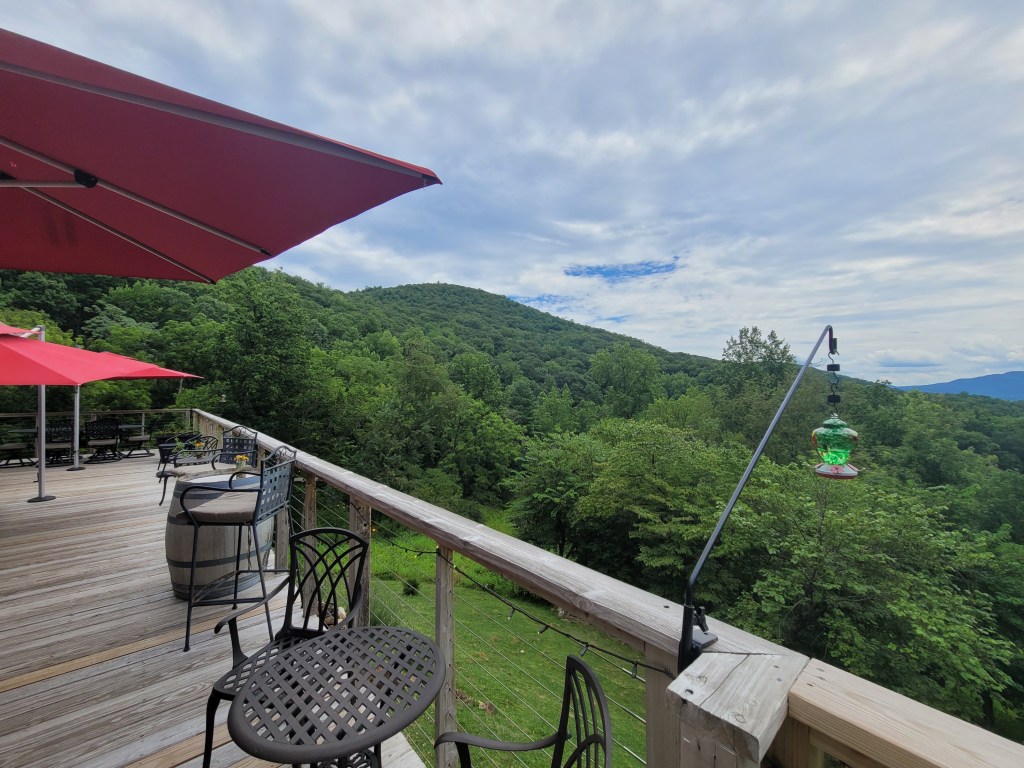 On this visit, we took one of husband’s dearest longtime friends for a relaxing afternoon. We got there a little bit early but Melinda was wonderful and let us take a spot on the deck and order charcuterie, wine and let us take in the gorgeous day. The day was alternating sun and clouds and there was a nice breeze, so after a few scorching weeks, the wine and shade and incredible view were refreshing.