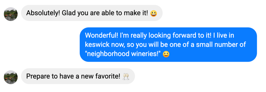 Later in September, there is new winery nearby called Southwest Mountain Vineyards that will open. I scored an invitation to the soft opening and I’m really looking forward to that. The best is that I got some DM’s from the owner: