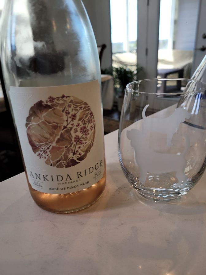 This is the 2022, not the new release of 2023 (my first bottles of 2023 vintage!!!!). I’ve put a 2023 in the wine fridge now and it will be opened soon. Saturday was very sunny and hot, and this was the perfect refreshing wine to go with it. Crisp berry notes at the front and I get a good bit of acidity from this wine. I did sample the 2023 at the tasting room, and I actually find the 23 to be a little more subdued than the 22 – I’m going to have to re-sample all of this :). The 22 has a darker color to it, and I need to check in with Ankida to see if they held back more for the Pinot Noir due to the incredible 23 growing season – I am so curious about how they managed the vintage. This is a wine I consistently loved last summer. I do expect it’s going to be very difficult this summer with so much incredible white wine and rosé coming out – deciding what to drink and when – there will be so many great choices! We really are going to have to throw some patio parties here because there will be a ton of incredible wine in my home.