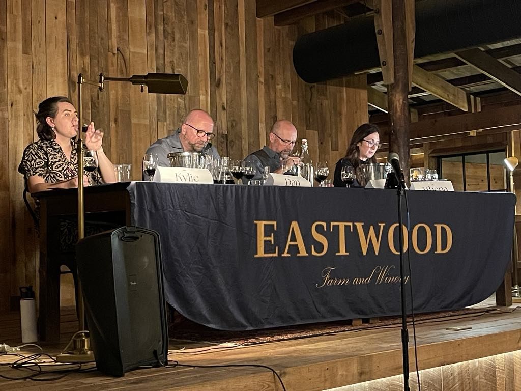 So to my shock, I found myself on stage at Eastwood on Wednesday evening, being introduced as a judge for the nine teams who would take four barrel samples and make a Meritage that they hoped would impress the judges. This evening was Eastwood’s sixth blending competition, and in this one, teams would blend for a Meritage, and Eastwood pledged to bottle 100 cases of the wine that won the judges over. The judging team included Eastwood owner, Athena Eastwood, winemaker Jake Busching, and Ethos Wine and Tea co-owner and actual wine expert Kylie Britt. The four of us would determine the winning blend AND the winning team name.