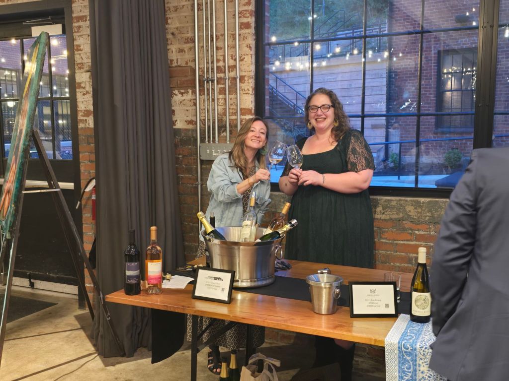 Over the course of our time there, between sampling cookies from the hors d’oeuvres table, circling the silent auction table to watch my bids, and sampling wines, we ended up sipping a ton of wine. RdV was there with Rendezvous and Friends and Family, which was I didn’t expect – these are fantastic wines, and I find once again that I honestly prefer the simpler presentation from Friends and Family to the bolder complexity of Rendezvous. We visited with Jake Busching and Athena Eastwood, so I got some Cheninquisition and Eastwood 2022 Gold Medal Petit Verdot. We also got to check in on Paradise Springs and their PvT (a Tannat and Petit Verdot blend that was stunning) and Blenheim, where Tracey Love was pouring with winemaker Kristy Harmon. Joy Ting was pouring her 2021 Petit Manseng and a lovely 2022 Tannat (this was really fantastic and enjoyable, and quite different from the bolder Tannats of last weekend).
