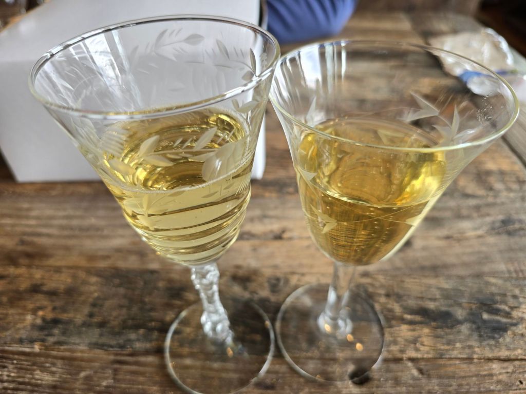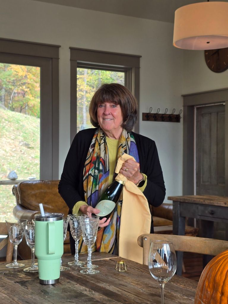 - 2014 Glen Manor Hodder Hill: Eleven years old and still full of life—Cabernet Sauvignon-led with Merlot and Petit Verdot, complex and beautiful. Kathy brought this one to share and we decanted briefly before serving. It’s still got plenty of time in the bottle left.