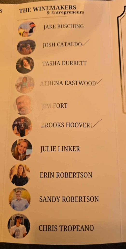 I also got to speak with Chris Tropeano for a while, who will very soon be releasing Present Company Wines. The bottles on the bar were from the 2024 vintage – a Pet Nat made with Chardonnay and a Carbonic Maceration Petit Verdot. Chris has a background in North Carolina breweries, and currently works at King Family. This will be the launch of his personal line, and there is plenty more to come from him too! He has a really interesting perspective, and talked about one project he is doing with a brewer that involves something like a co-ferment with Sauvignon Blanc (mind blown).
