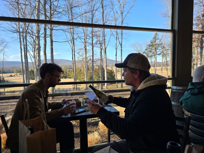 One of my favorite moments of the day perfectly captured Stephen’s approach as both winemaker and Virginia wine cheerleader. At the table next to ours, a patron sat with empty glasses after his companion went to the restroom. Stephen introduced himself, poured him a taste of the 2024 Viognier that wasn’t on the menu, and asked what he thought. He wasn’t selling—he was listening. Stephen is always in the tasting room because he genuinely wants to know how people experience the wines and understand what their customers are looking for when they come. He listened, thanked the customer, and turned back to us for a bit. I so appreciate him taking time on his Saturday to ask us what we thought.