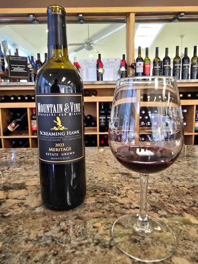At Mountain and Vine, I was curious about the gold medal winning 2023 Screaming Hawk Meritage. It was crafted by Stephen Barnard, and I wanted to see how it compared to previous years. While the tannins are currently a bit rough and need time to integrate, the foundational fruit is fantastic. I bought two bottles to age. We’ll check in on these in about six months to see and report back to you.