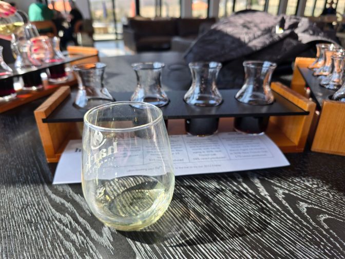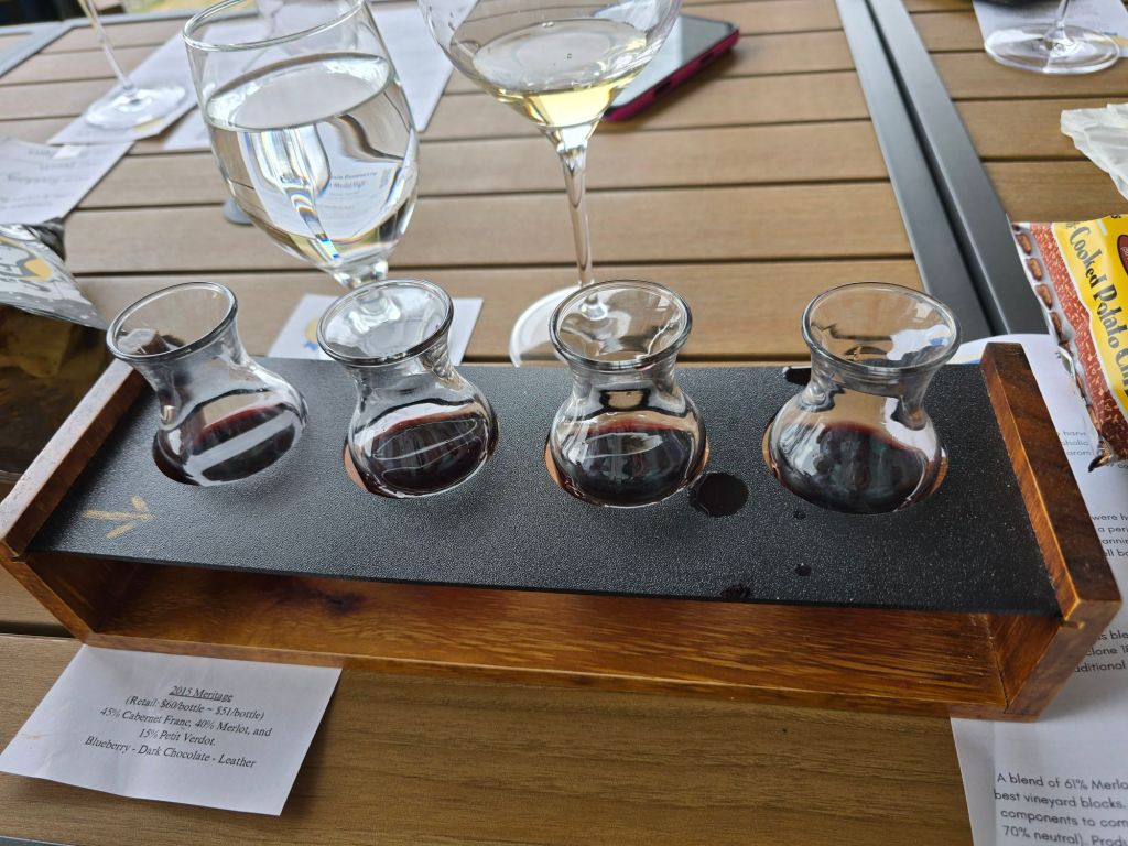 The standout for me was the 2023 Merlot Reserve (keep an eye on this one!). While their gold-winning Nebbiolo was not officially on the flight, an employee was kind enough to bring us a “splash” to sample. It’s spectacular. The 2023 Cabernet Franc Reserve was also probably one of the best I’ve had from this grape (I know, I know….).